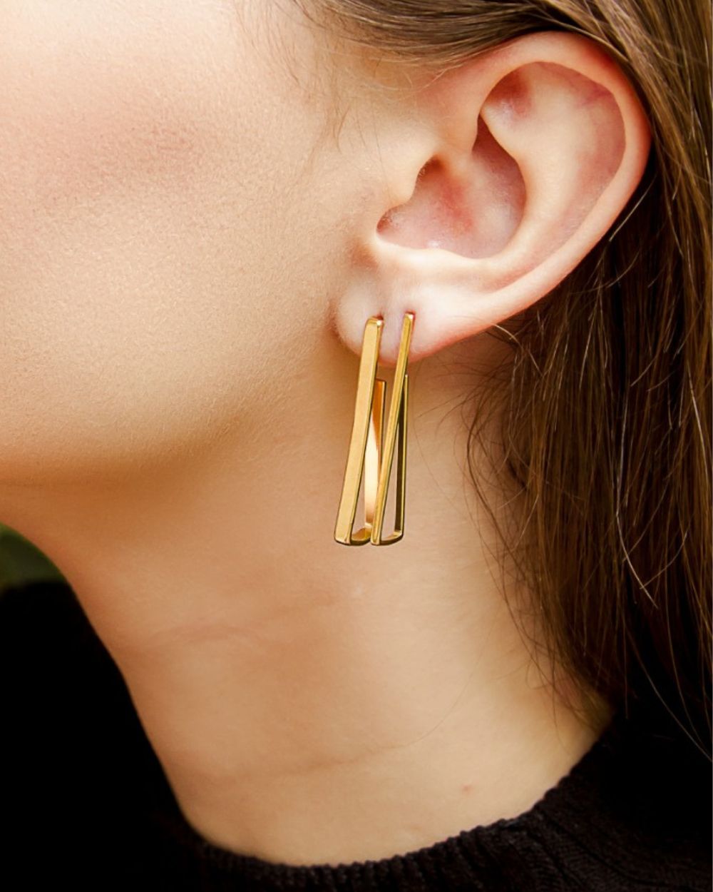 Argola estilizado L afinado folheado a ouro 18K hipoalergênico. Semijoias finas de qualidade e design diferenciado você só encontra na Stilla. Brinco leve e de design moderno, perfeito para dar destaque ao rosto.