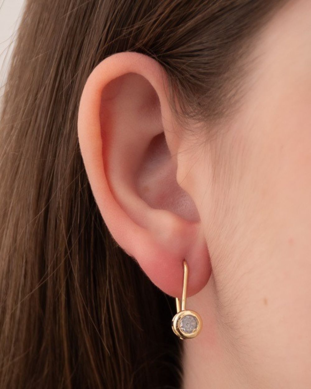 Brinco de gancho com ponto de luz de zircônia na ponta folheado a ouro 18K hipoalergênico. Semijoias finas de qualidade e design diferenciado você só encontra na Stilla. Brinco versátil e sofisticado.