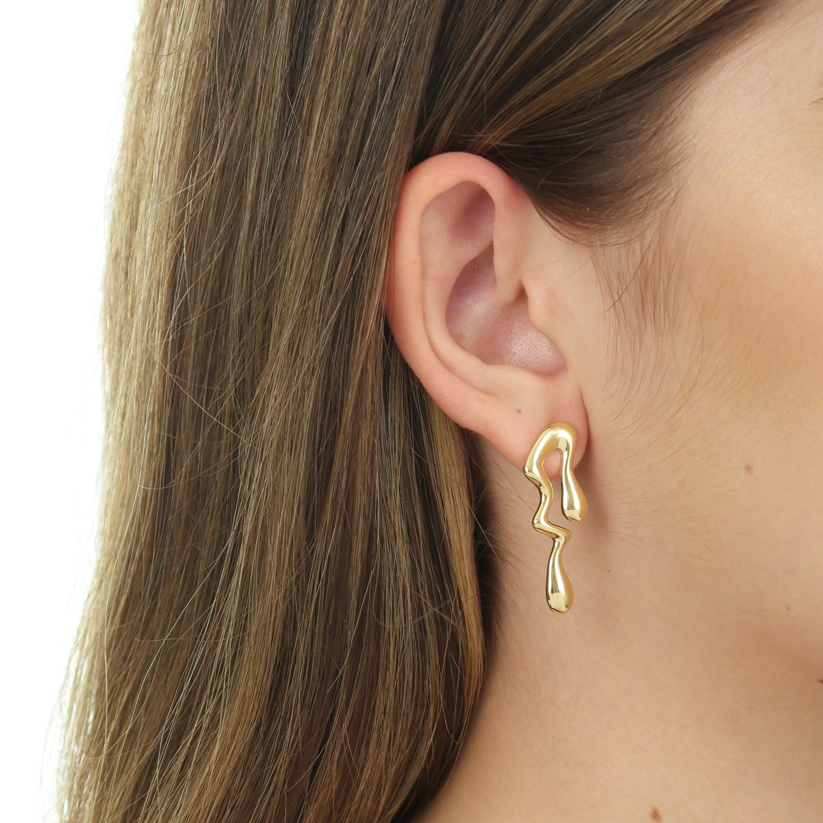 Brinco longo traço estilizado folheado a ouro 18K hipoalergênico. Semijoias finas de qualidade e design diferenciado você só encontra na Stilla. Brinco leve e de design moderno, perfeito para dar destaque ao rosto.