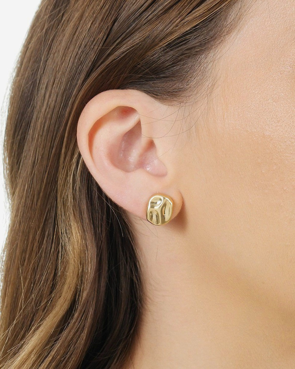Brinco martelado robusto formato retângulo folheado a ouro 18K hipoalergênico. Semijoias finas de qualidade e design diferenciado você só encontra na Stilla. Brinco sofisticado e marcante na medida certa, sem perder a leveza.
