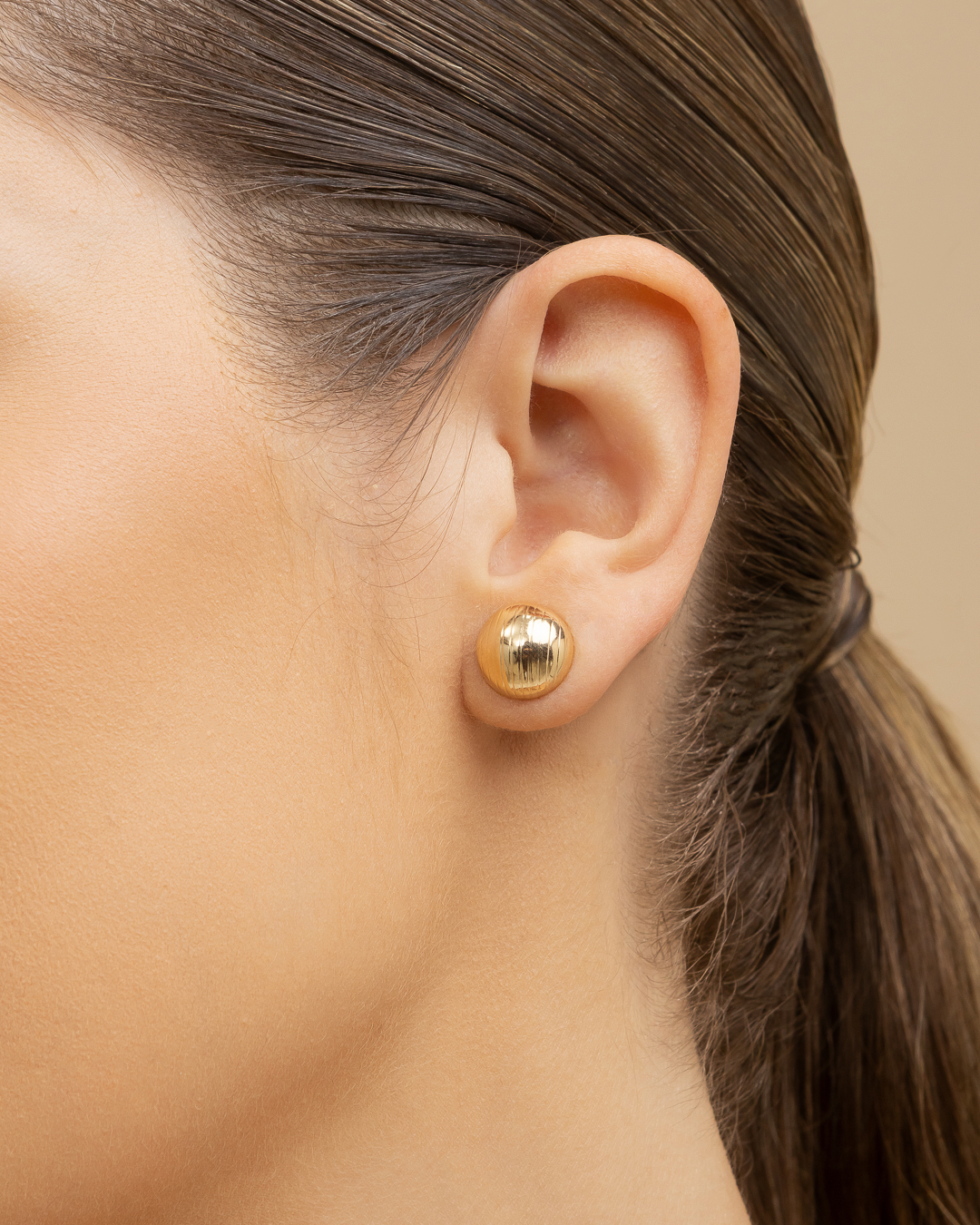 Brinco meia bola oca listras folheado a ouro 18K hipoalergênico. Semijoias finas de qualidade e design diferenciado você só encontra na Stilla. Brinco sofisticado e marcante na medida certa.