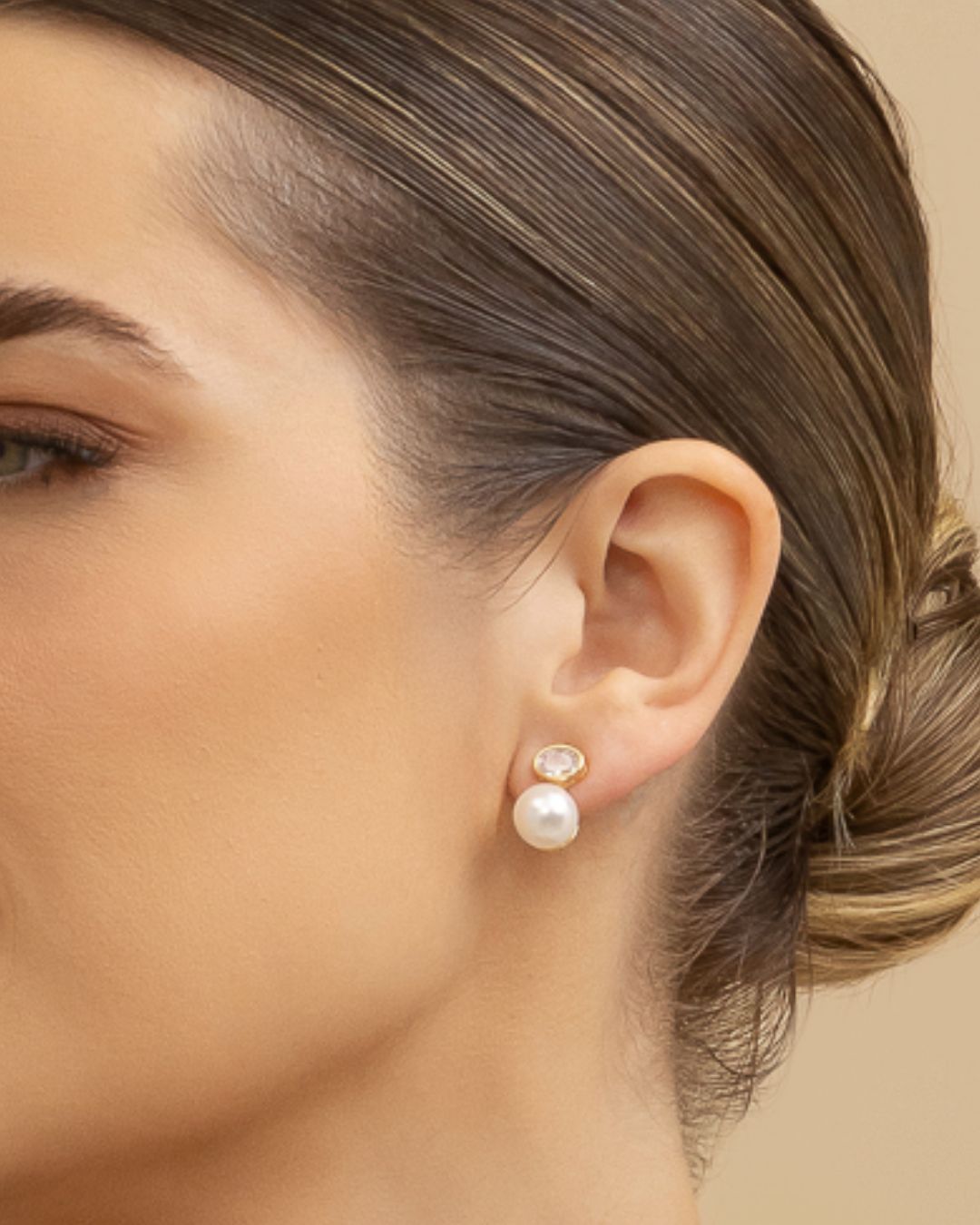 Brinco pérola shell base zircônia elipse folheado a ouro 18K hipoalergênico. Semijoias finas de qualidade e design diferenciado você só encontra na Stilla. O brinco de pérola é um clássico. Aquela semijoia atemporal e requintada que nunca sai de moda.