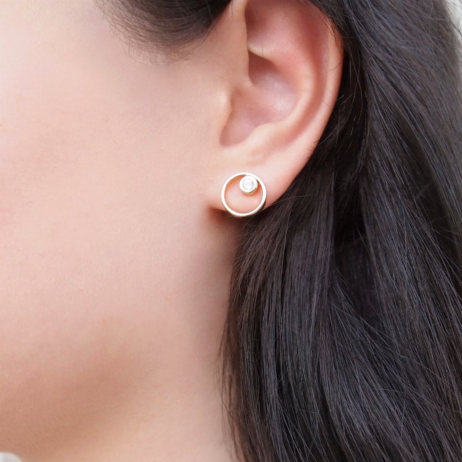 Brinco zircônia redondo vazado folheado a ouro 18K hipoalergênico. Semijoias finas de qualidade e design diferenciado você só encontra na Stilla. O brilho da zircônia ilumina o rosto de forma elegante e delicada.