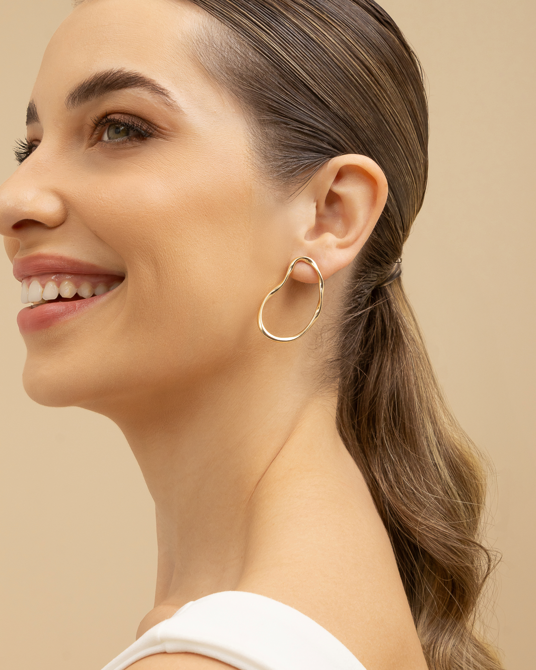 Maxibrinco design orgânico fino folheado a ouro 18K hipoalergênico. Semijoias finas de qualidade e design diferenciado você só encontra na Stilla. Brinco sofisticado e marcante na medida certa, sem perder a leveza.